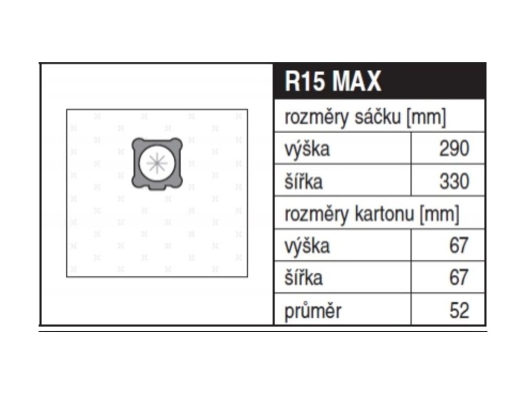 Parametry R15 MAXPLUS Filtrů a sáčků k vysavači