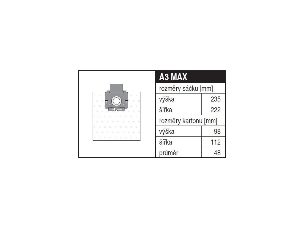 Sáčky do vysavače z netkané textilie A3MAX. Balení obsahuje 4 ks textilních sáčků A3MAX, vůni do vysavače zdarma, která krásně provoní Váš byt, mikrofiltr a motorový filtr pro Váš vysavač.
