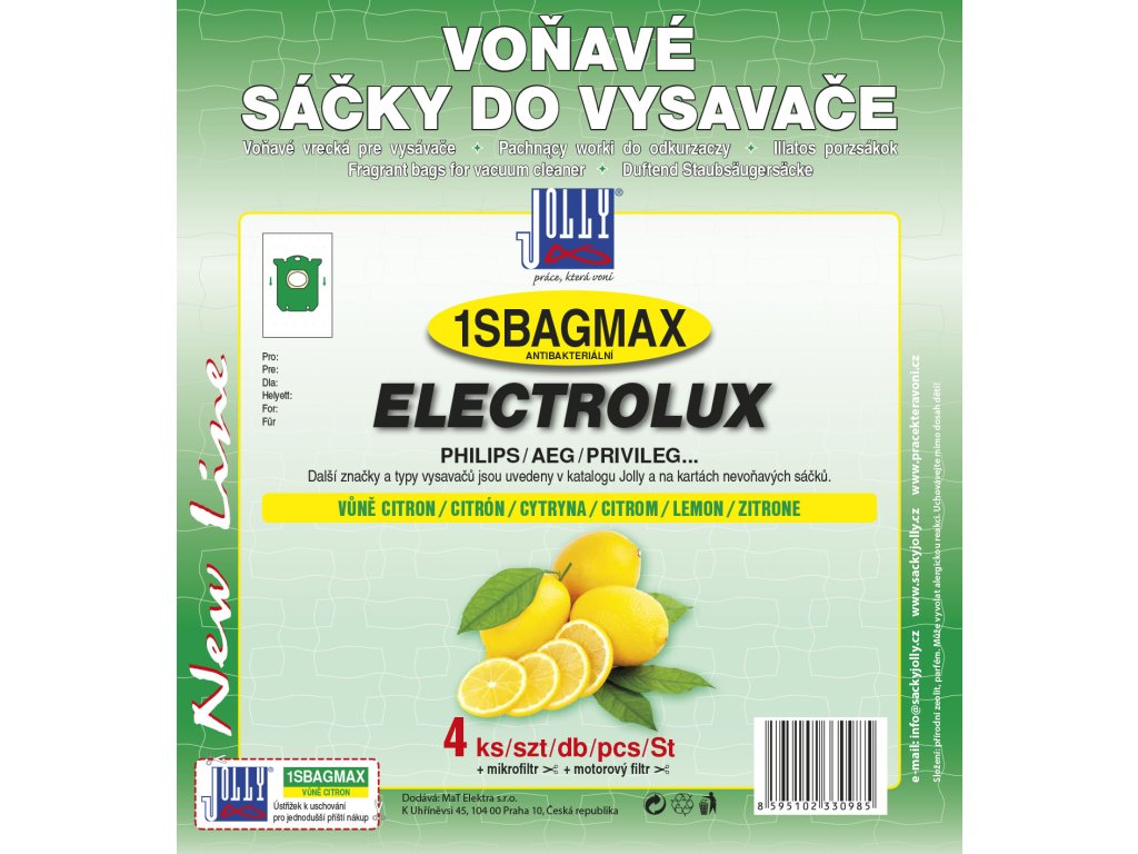 Voňavé sáčky do vysavače 1SBAG MAX Citron obsahují 4 ks aromatických sáčků z netkané textilie, motorový filtr a mikrofiltr.
